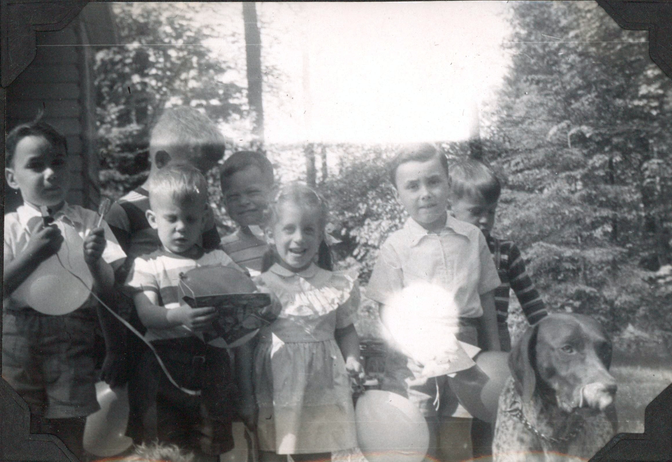 I have written before that in my early years all of my friends were boys. Above you can see the guests at my birthday party, six little boys, including the twins in nice white shirts. We played together for hours, mainly chasing, running, hiding, swinging, sliding and shooting. We all had cap guns and gleefully shot them with no thought about how later generations might condemn such play.