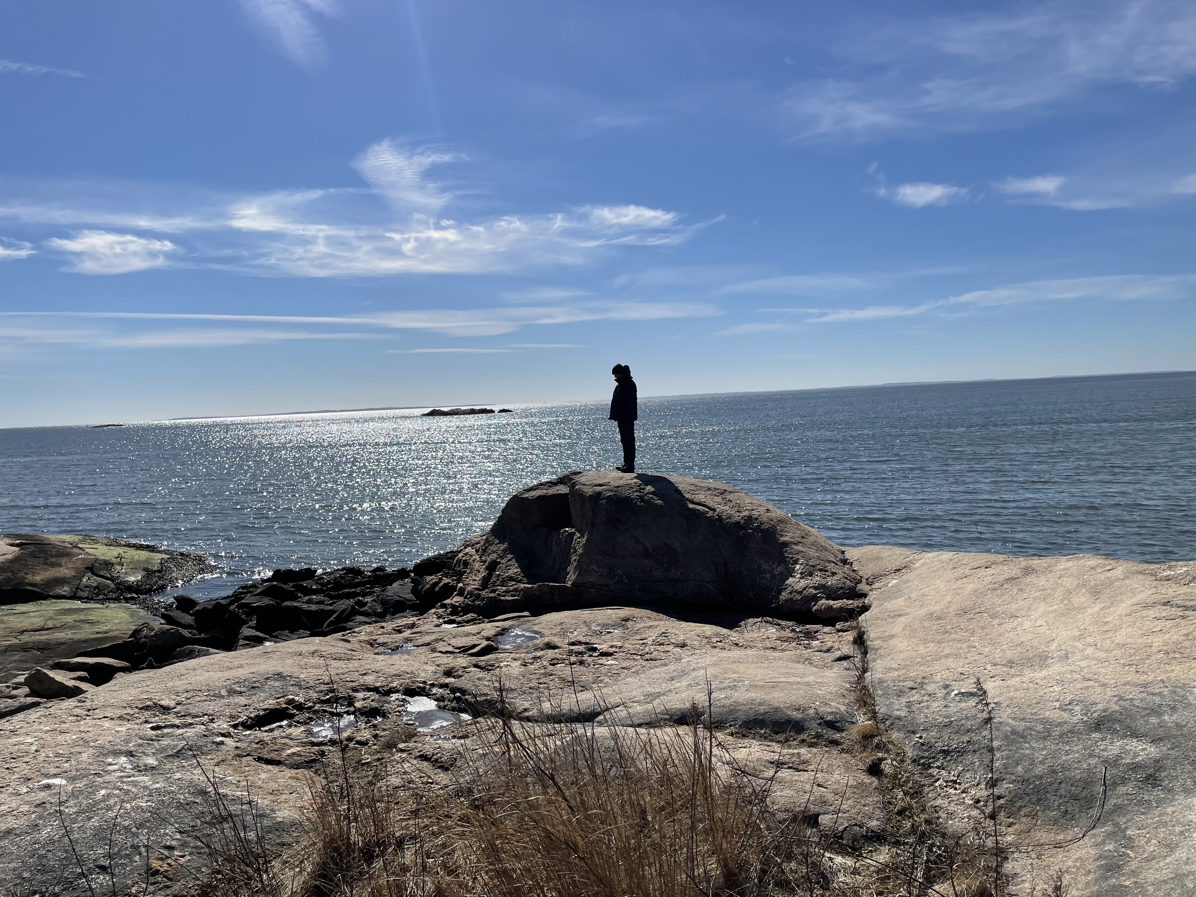 Last Monday, a national holiday, the weather was a balmy 45 degrees and Charlie and I went to Rocky Neck State Park along Long Island Sound. Although not open to the full Atlantic Ocean, the Sound has beaches, tidal activity and much sea life including clams, oysters and fish. That day a few dozen other people were enjoying the “warm” weather. Since then we had 67 degree weather on Wednesday, 27 degree weather Thursday and awoke this morning to several inches of ice encrusted snow. Nothing boring about weather here.