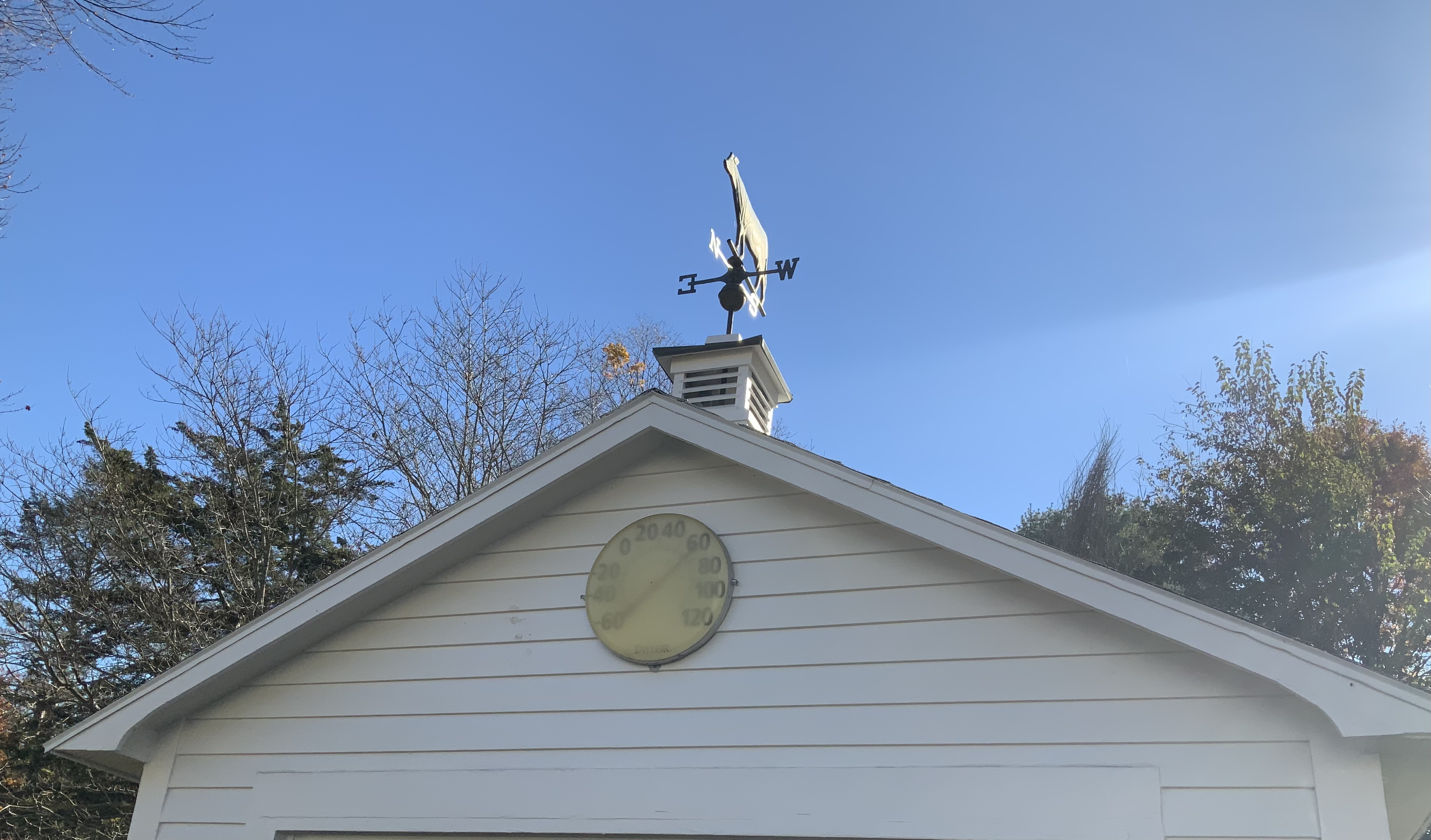 What do you call the sunny, warm dry New England weather after the first hard frost in late October or early November? I have always called it Indian summer and it has always evoked warm feelings about the season. This week we are experiencing a perfect example as you can see by the thermometer on the left(warm for November 3) and the dead sunflower on the right(remnant of a hard frost.) In fact it has been so warm the last few nights that Charlie had to take the storm window back off our bedroom window and reinstall the screen. Once he did that our sleep improved immensely.