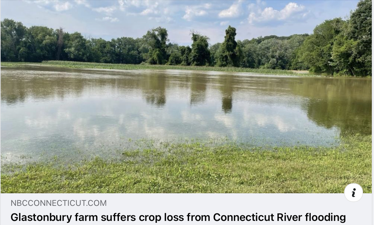 The Connecticut River valley has long supported farms, but flooding in July is a disaster for the record books. While the River floods each spring after the thaw it is before planting time. In this challenging time perhaps some fields can be replanted. Others are so contaminated by the flood water’s chemicals and sewage they will sit idle. We will continue to share our portion of the loss.